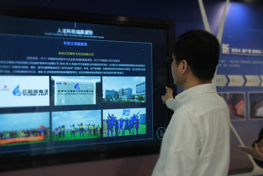 觸摸屏,可手動查詢。通過圖片和文字相結(jié)合的形式,讓觀眾可自主選擇想要了解的內(nèi)容