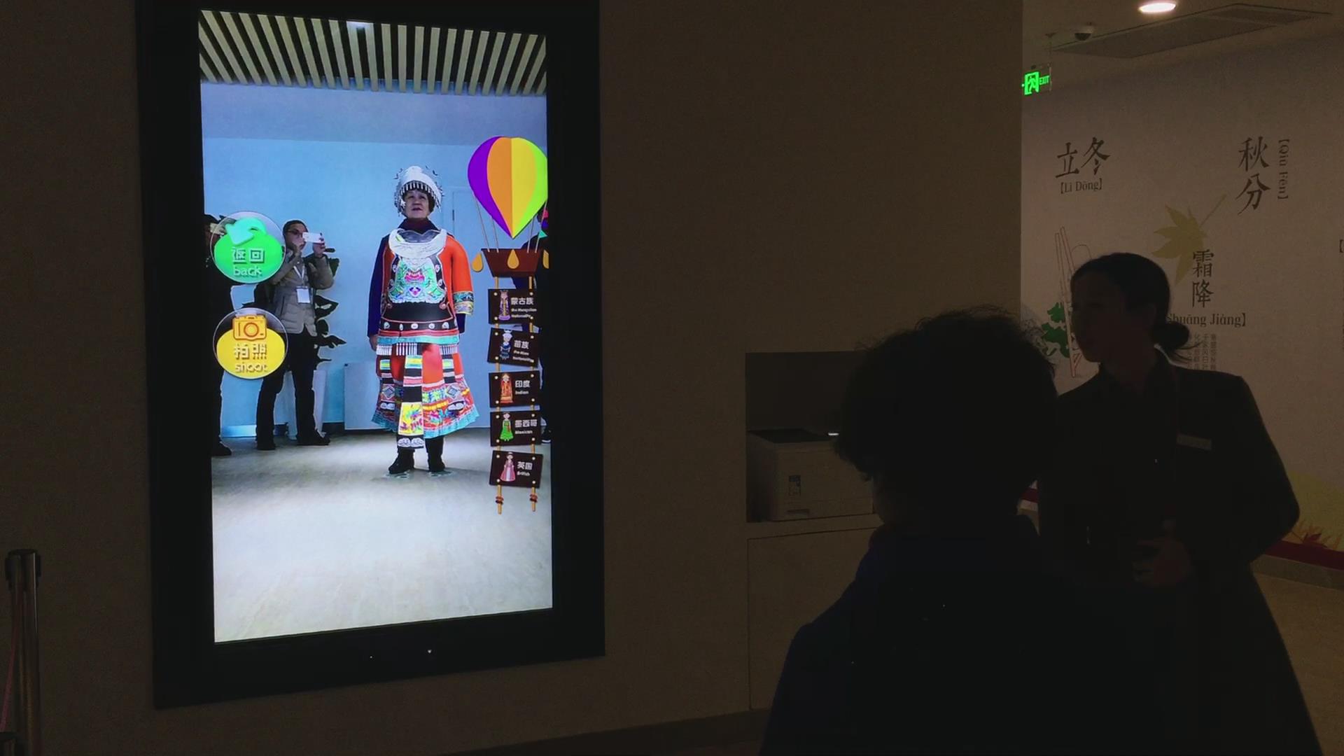 大屏虛擬換衣包含大屏顯示器,平板終端以及攝像機(jī)三塊構(gòu)成通常作為鏡子使用的大顯示器上,客戶可根據(jù)自己喜歡的樣式點(diǎn)擊想要的衣服,然后利用擴(kuò)增現(xiàn)實(shí)技術(shù)把衣服穿在身上的效果顯示出來(lái)。而此時(shí),在另一頭的電視屏幕上,會(huì)出現(xiàn)你親手搭配的即時(shí)畫(huà)面,所選單品的信息也會(huì)自動(dòng)顯示在屏幕左下角。如若不滿意,可Restart重新選擇單品更換搭配。