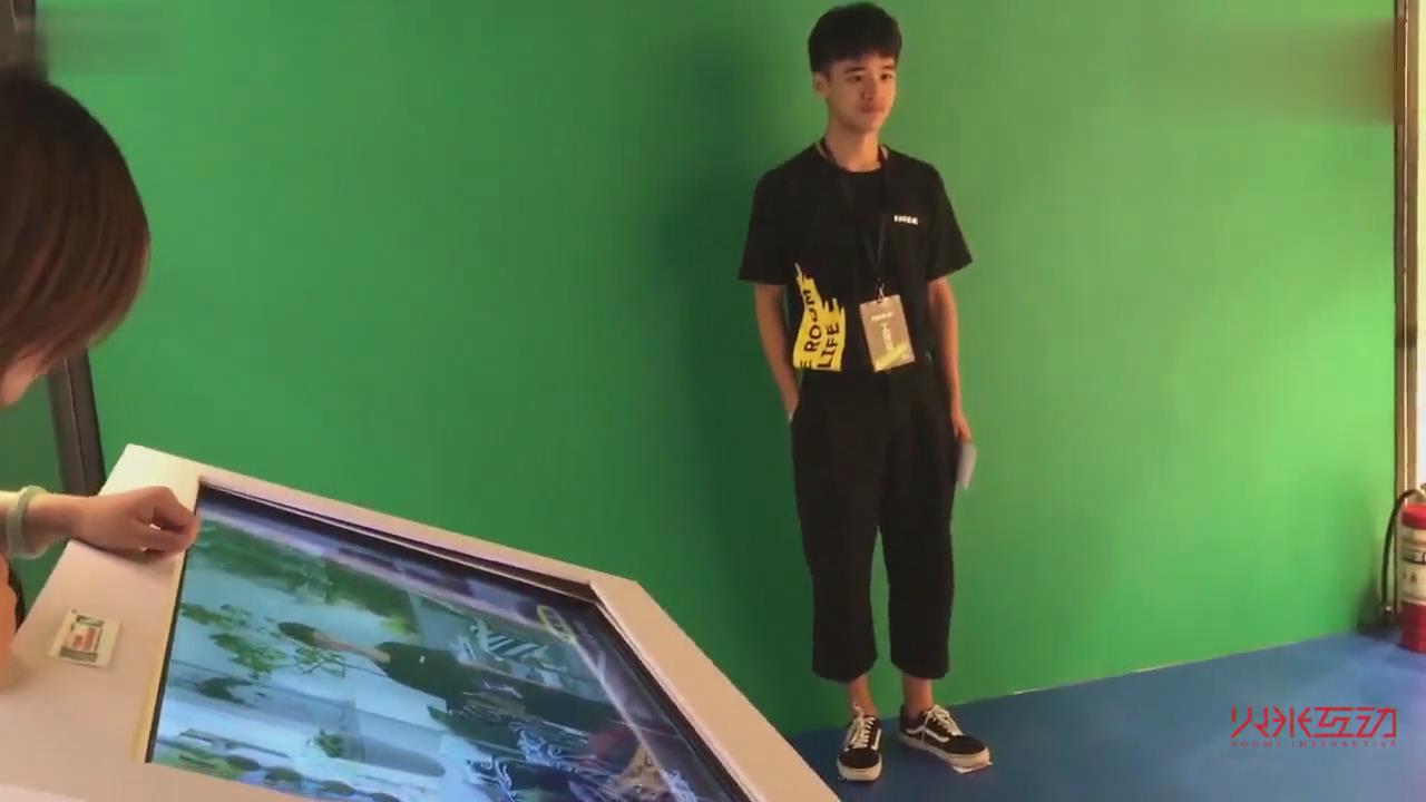 互動又稱AR拍照,觸摸屏和攝像頭進行畫面捕捉,利用小屏控制大屏幕并將照片放入大屏幕中,可根據(jù)特別定制的背景讓體驗者再互動娛樂的同時來參于并了解關(guān)注我們的主題,這也提高了摳像拍照的趣味性同時照片也可以微信分享與郵件發(fā)送。