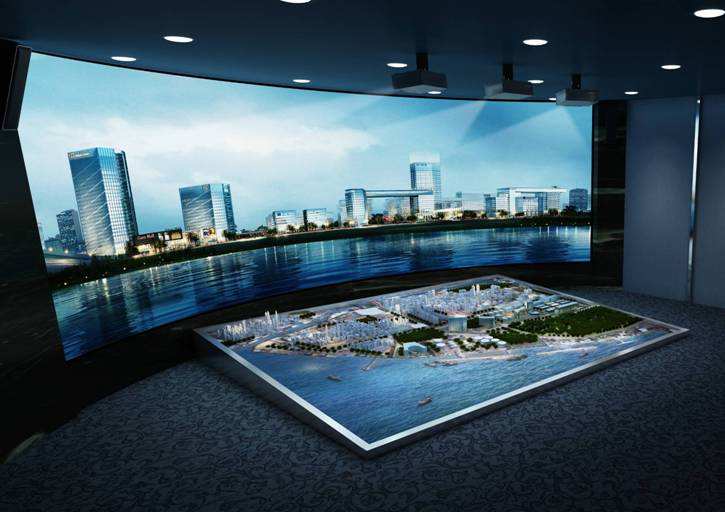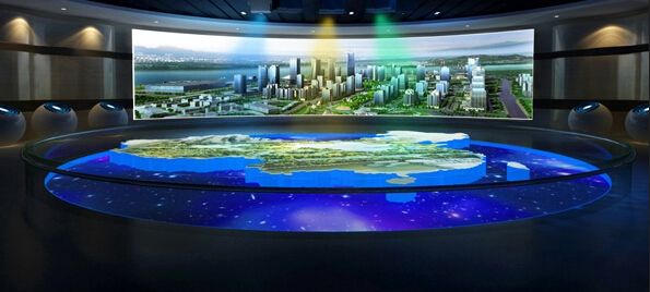 弧幕數字沙盤是規劃館中常見的設備,一般為城市規劃數字沙盤,而弧幕數字沙盤的表現能夠讓人們見證一座城市的過去、現在和未來,讓市民和外來人口欣賞到一座城市的發展。